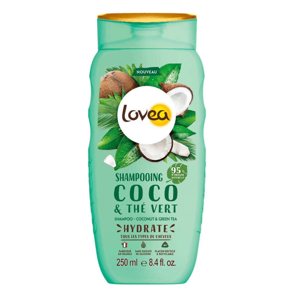Șampon hidratant pentru toate tipurile de păr, cu apă de cocos și extract de ceai verde.