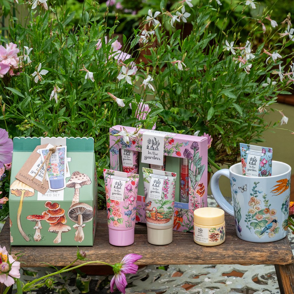 Oferă-ți o pauză plăcută în timpul grădinăritului cu setul cadou In The Garden, care combină o clipă reconfortantă cu ceai sau cafea și un ritual de îngrijire pentru mâinile obosite. Într-o cană superbă în nuanță turcoaz, cu motive de grădină, se ascunde un săpun lichid delicat cu aromă de trandafir și o cremă hrănitoare pentru mâini, parfumată cu note proaspete de rubarbă și mentă.