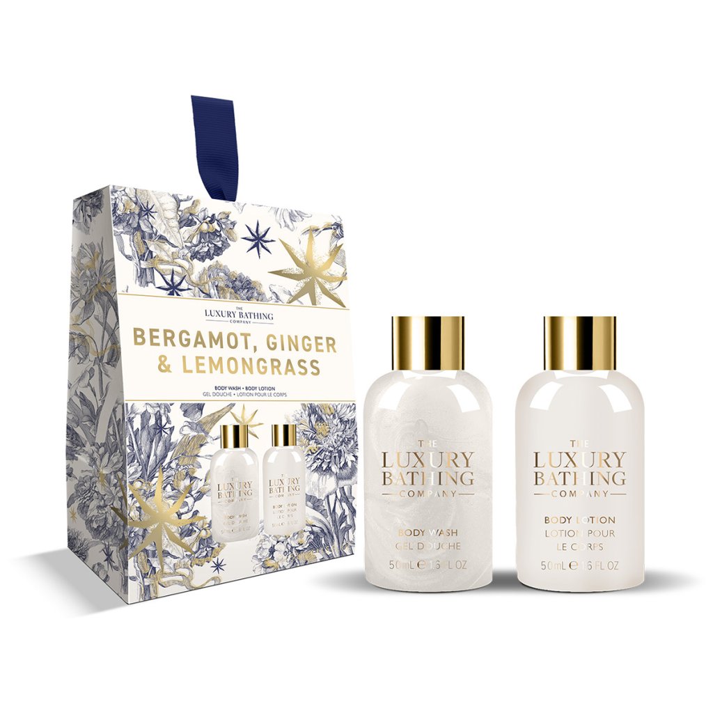 Bergamotă, Ghimbir & Lămâiță - set de îngrijire a corpului, 2 buc. mini set de săpun de corp și cremă într-o cutie cadou de agățat