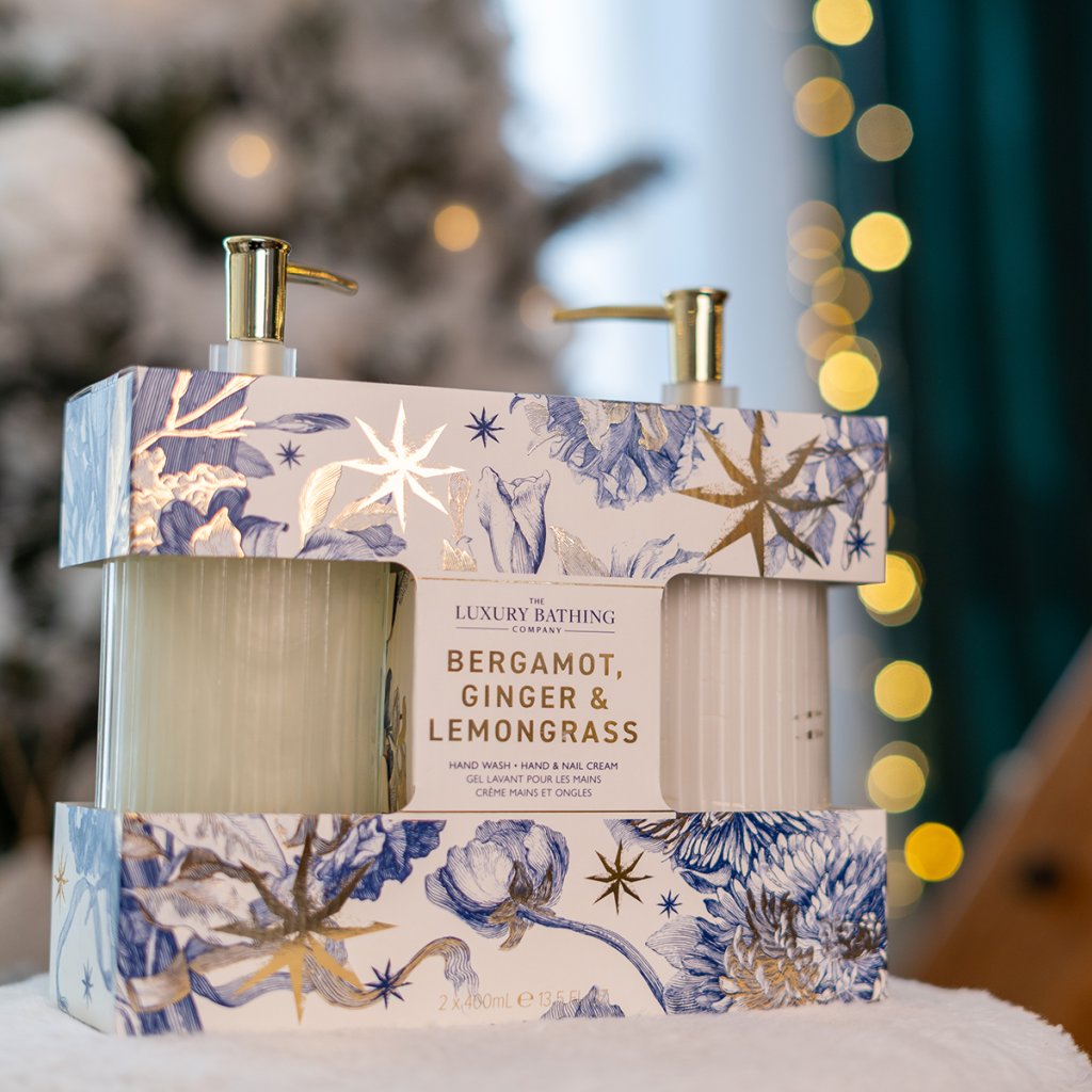 Colecția elegantă Bergamotă, Ghimbir & Lemongrass combină designul rafinat cu detalii festive delicate în tonuri aurii, bleumarin și crem. Produsele de îngrijire sunt însoțite de un parfum luxos și intens cu tonuri proaspete de bergamotă, lemongrass și ghimbir, completate de tonuri de flori, ambră și mosc. Colecția este concepută pentru femei și bărbați peste 40 de ani, care apreciază calitatea și luxul.
