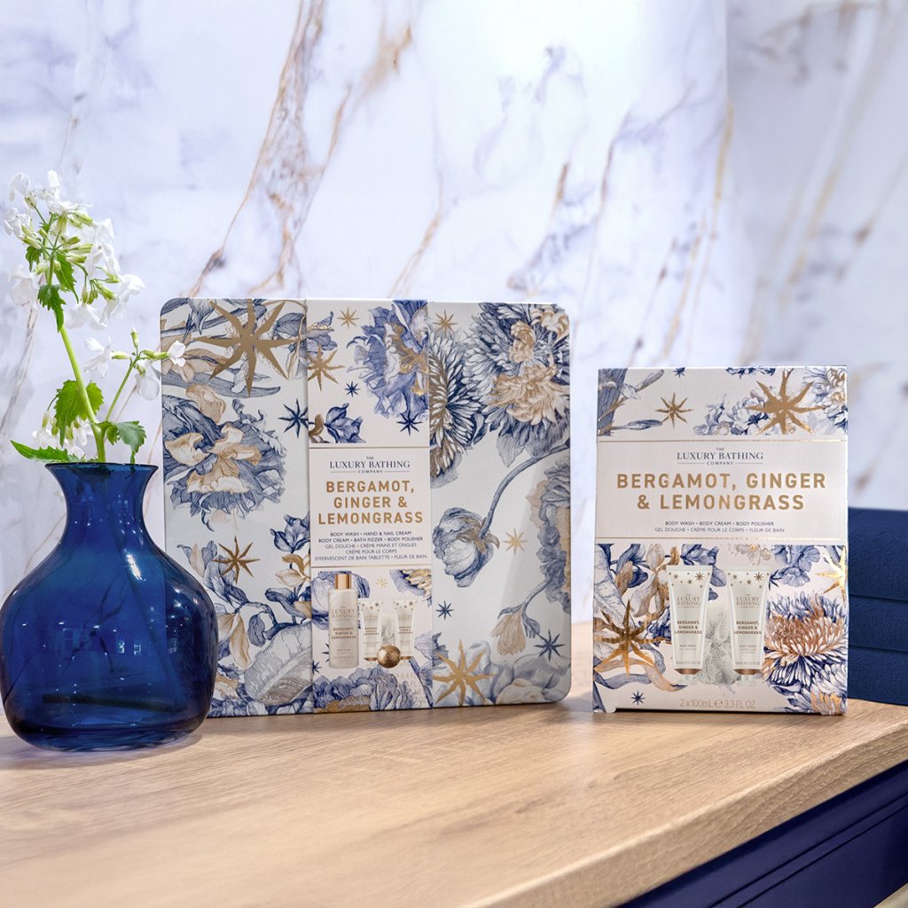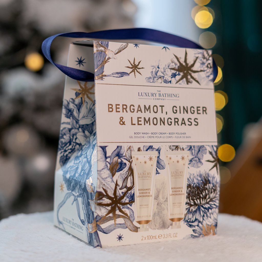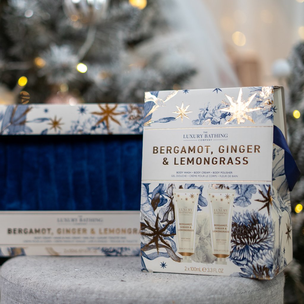 Colecția elegantă Bergamot, Ghimbir & Lemongrass combină designul rafinat cu detalii festive delicate în tonuri aurii, bleumarin și crem. Produsele de îngrijire sunt însoțite de un parfum luxos și intens cu tonuri proaspete de bergamotă, lemongrass și ghimbir, completate de tonuri de flori, ambră și mosc. Colecția este destinată femeilor și bărbaților de peste 40 de ani, care apreciază calitatea și luxul.
