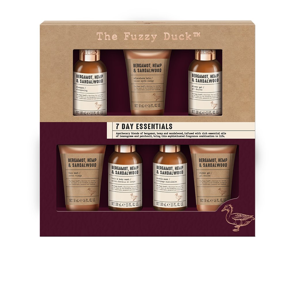În colecția premium de îngrijire pentru bărbați The Fuzzy Duck se îmbină frumusețea sălbatică a naturii cu eleganța gentilomenească și aspectul sofisticat. Estetica rustică inspirată de materiale naturale combină tonuri de vișiniu și naturale cu elemente de bronz și cu etichete în stil farmaceutic tipic. Creat cu un parfum unic, care combină cânepa caldă cu note delicate de lemn de santal și un strop de bergamotă energizantă.
