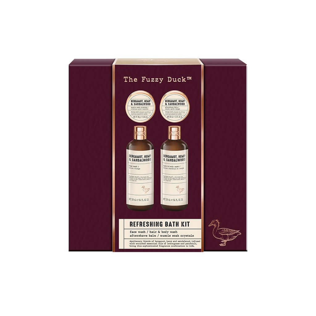 În colecția premium de îngrijire pentru bărbați The Fuzzy Duck se îmbină frumusețea sălbatică a naturii cu eleganța gentilomenească și aspectul sofisticat. Estetica rustică inspirată de materiale naturale combină tonuri de vișiniu și naturale cu elemente de bronz și cu etichete în stil farmaceutic tipic. Creat cu un parfum unic, care combină cânepa caldă cu note delicate de lemn de santal și un strop de bergamotă energizantă.