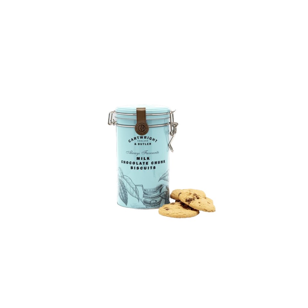 Biscuiți cu bucăți de ciocolată cu lapte Biscuiți cu bucăți de ciocolată cu lapte în cutie metalică, 200 g
