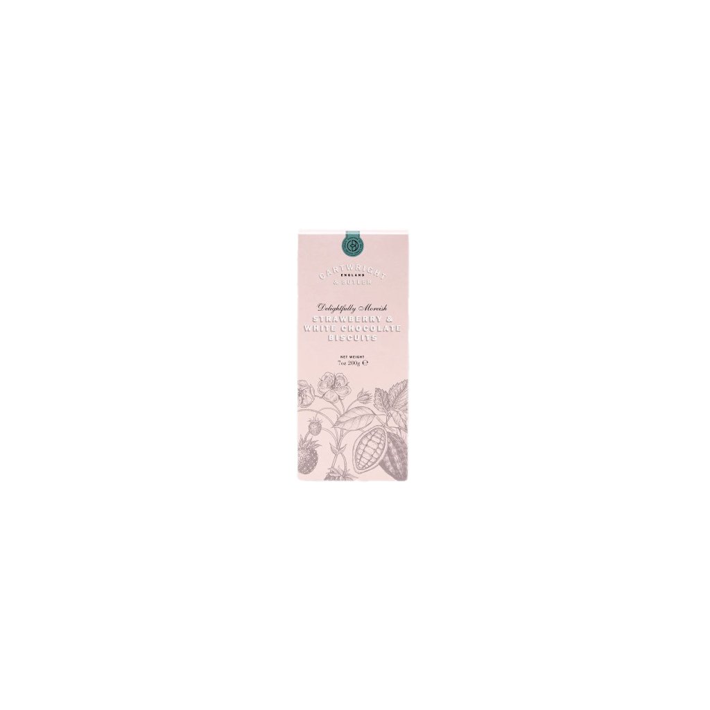 O delicatesă dulce inspirată de combinația clasică de căpșuni și smântână creează o fuziune perfectă de arome. Fiecare biscuițe este coptă la perfecțiune, crocantă și fin friabilă, îmbogățită cu un pumn de căpșuni uscate și bucăți de ciocolată albă fină. Biscuiții Cartwright & Butler sunt ideali pentru o ceașcă de ceai, ca un desert mic sau pur și simplu atunci când vrei să te bucuri de ceva special în timpul zilei.