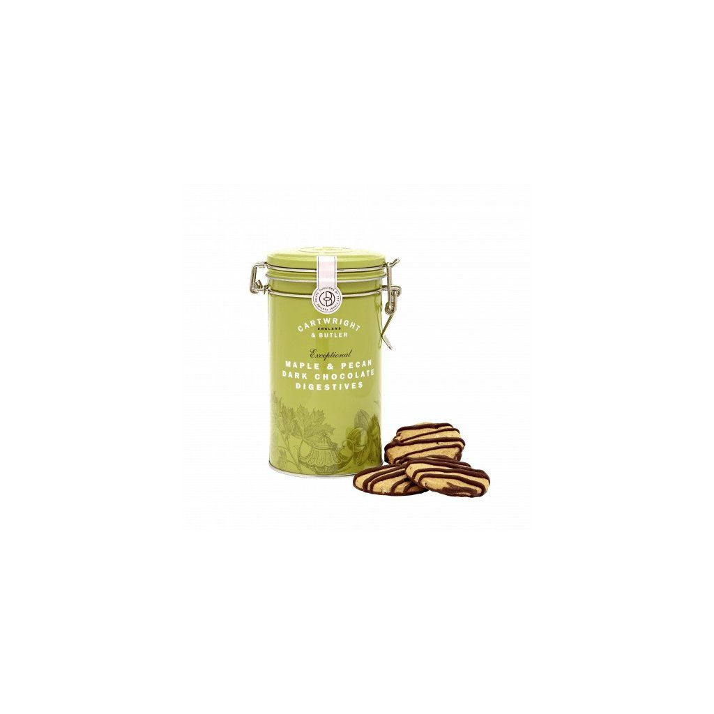 Biscuiți digestivi cu ciocolată neagră, arțar și pecan Biscuiți cu nuci pecan și glazură de ciocolată în cutie de tablă, 200 g