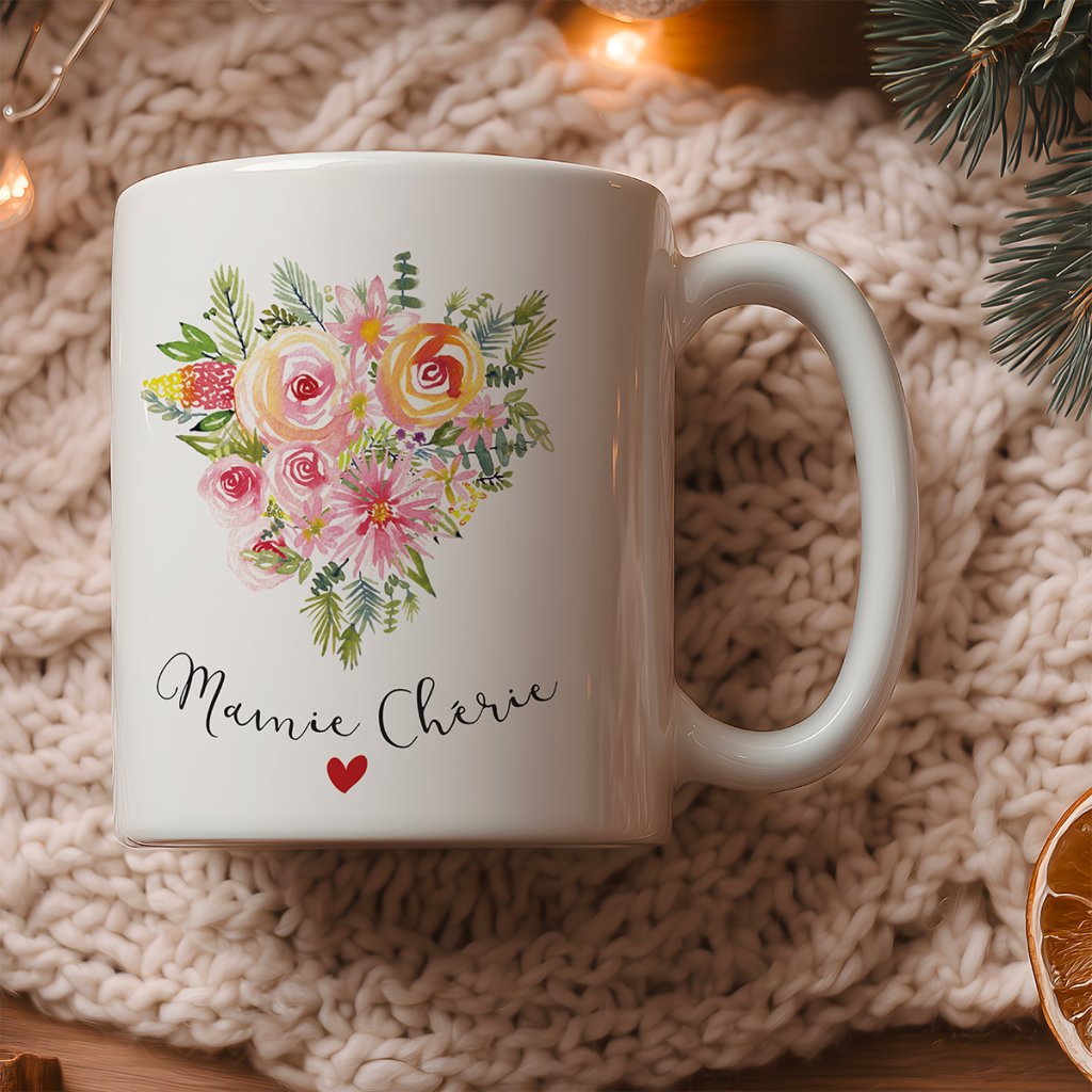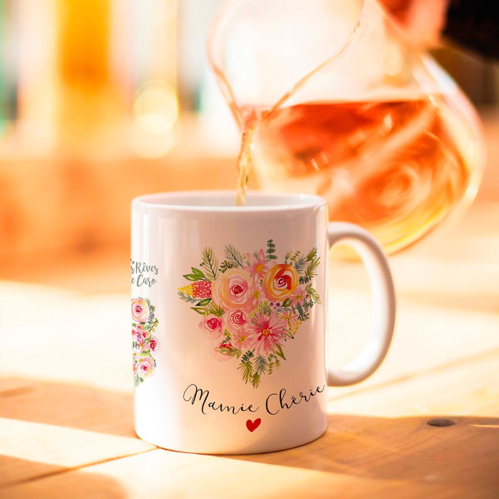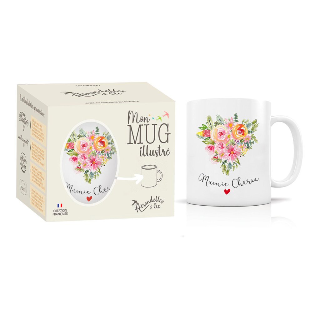 Plină de bucurie și culori – aceasta este cana de designer de la marca franceză Hirondelle & Cie. Ilustratoarea Caroline de la Les Reves de Caro readuce la viață motivul său floral tipic – de data aceasta în formă de inimă cu inscripția Mamie Chérie. Modul ideal de a-i spune bunicii cât de mult este iubită.