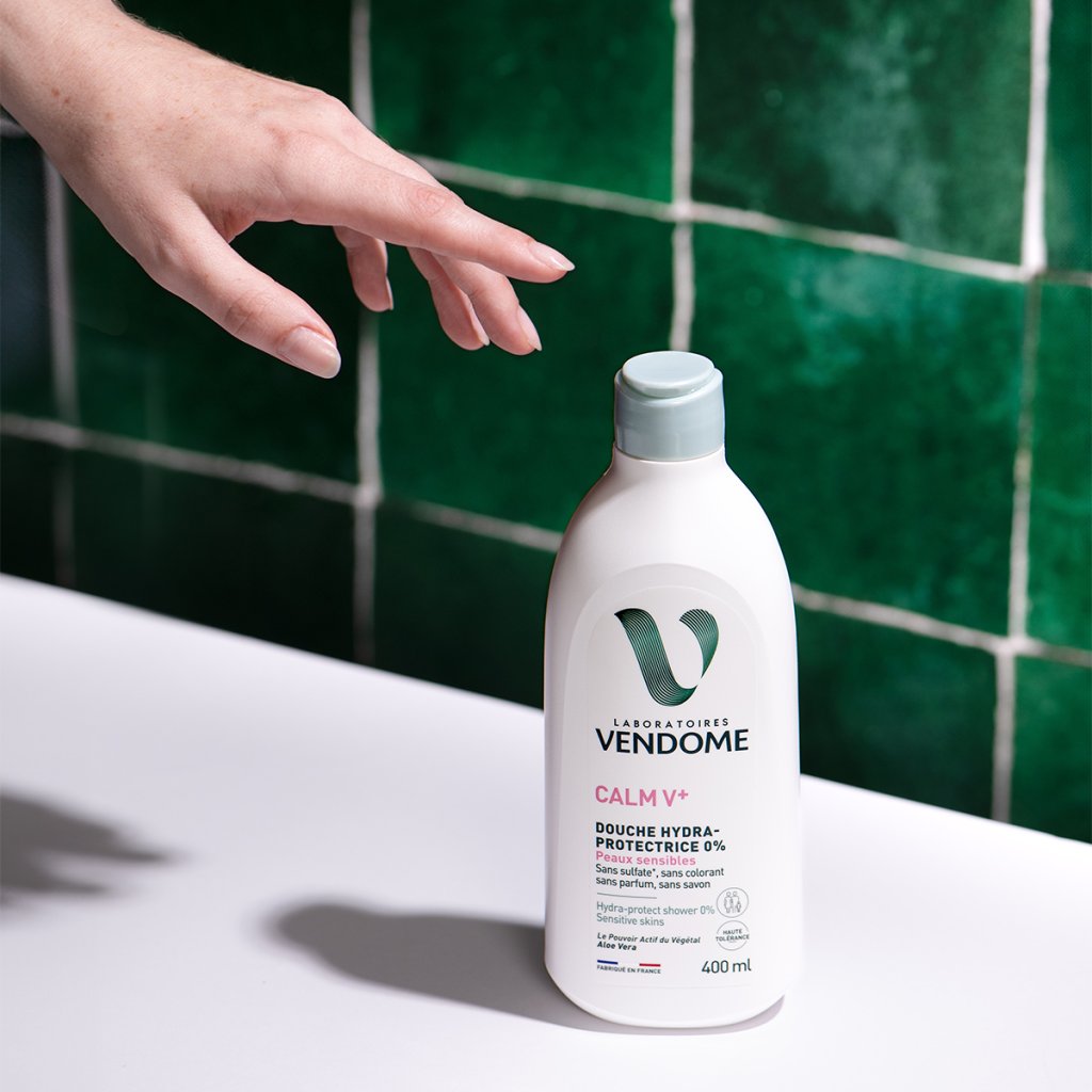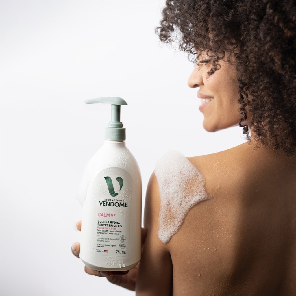 Pielea sensibilă merită o îngrijire excepțional de delicată. Vendome CALM V+ gel de duș protector este creat cu respect maxim pentru nevoile pielii fragile. Compoziția sa pură, fără parfum, sulfati, săpun și coloranți curăță delicat, fără a perturba bariera naturală de protecție a pielii.
