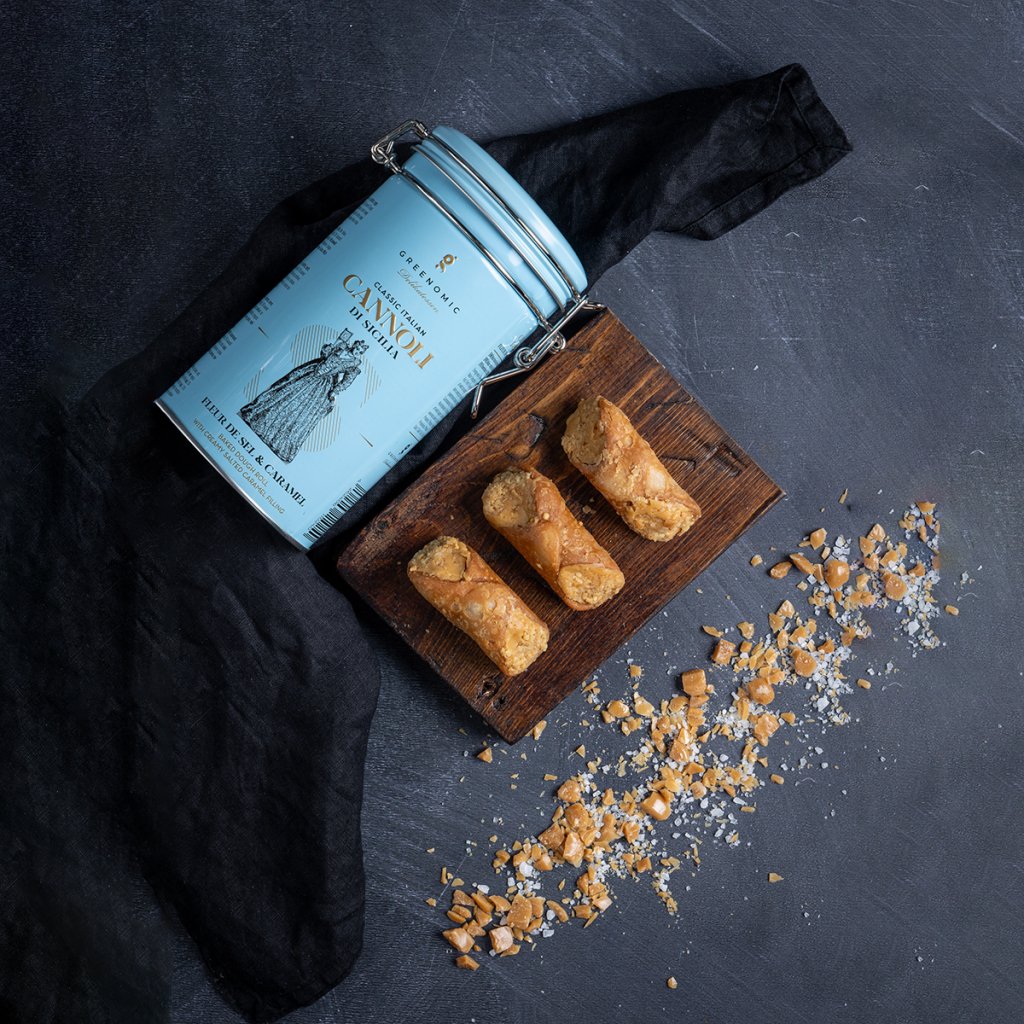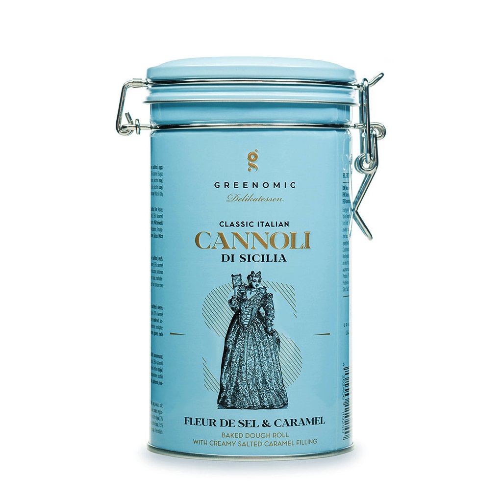 Răsfățați-vă cu o experiență gustativă autentică cu celebrele cannoli – tuburi fragile cu umplutură cremoasă de caramel și un strop de sare de mare, care pur și simplu se topesc în gură. O delicatesă tradițională siciliană într-o interpretare modernă, este păstrată într-o cutie elegantă. Cannoli sunt perfecte ca un cadou comestibil sau o tentație dulce la o cafea de după-amiază.