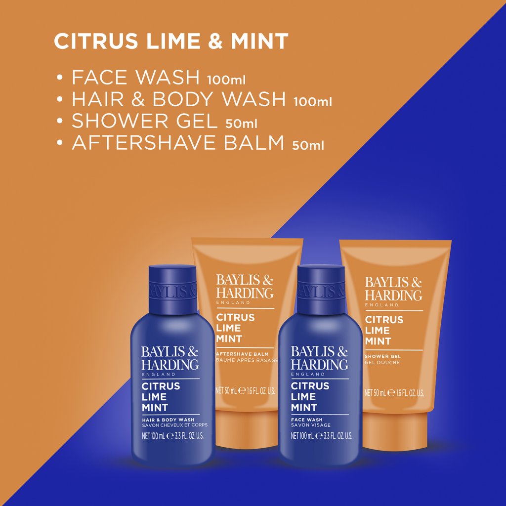 Citrus, Lime & Mint - set de îngrijire a corpului, 4 buc set cu produse pentru corp, păr și ten pentru bărbați cuparfum revigorant