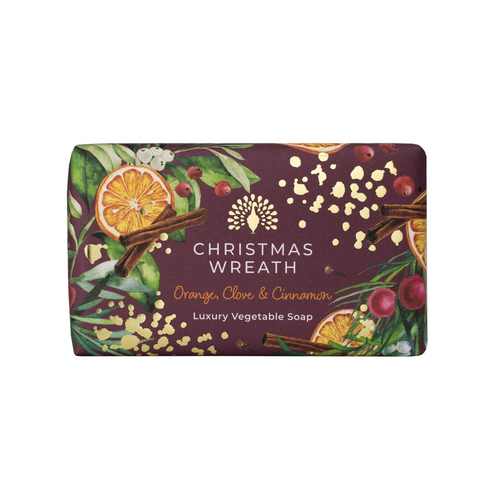 Descoperiți magia Crăciunului cu săpunul solid de lux pentru mâini de la English Soap Company! Combinația de portocală picantă, note calde de scorțișoară, cuișoare și o notă senzuală de mosc creează un parfum bogat care vă va încânta toate simțurile. Săpunul este ambalat într-o hârtie de Crăciun superbă, cu motive de felii de portocală, scorțișoară și detalii strălucitoare, care creează împreună o atmosferă festivă perfectă. Oferiți-vă dumneavoastră sau celor dragi un strop de lux și dăruiți săpunul, de exemplu, sub brad.