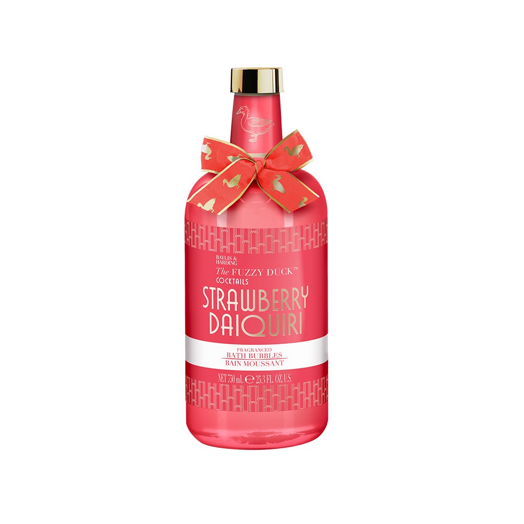 Transformă fiecare baie într-o experiență revigorantă cu spuma de baie inspirată de cocktailul Strawberry Daiquiri. Parfumul dulce și suculent de căpșuni, cu o notă fină de lime, aduce atmosfera de vară direct în baia ta. Spuma bogată curăță delicat pielea și o lasă fină, catifelată și plăcut parfumată.