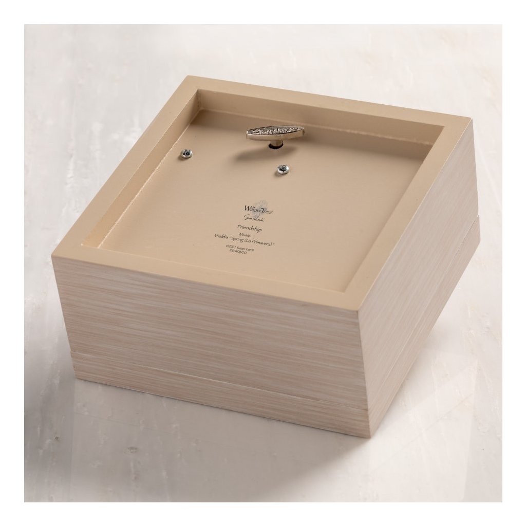 Cutia de bijuterii sculptată cântă o melodie frumoasă. Pe capac se află un ornament cu două personaje așezate față în față. Cutia de bijuterii este împărțită în trei compartimente, iar pe capac este inscripția „Ești prietenul meu”.