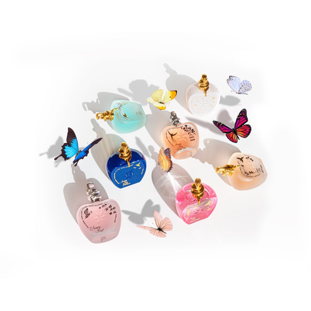 - Ambalaj: Cutia este de culoare violet deschis, cu detalii argintii lucioase și motive de fluturi și flori, care reflectă designul sticlei. Designul cutiei este elegant și romantic, completând perfect aspectul general al parfumului.