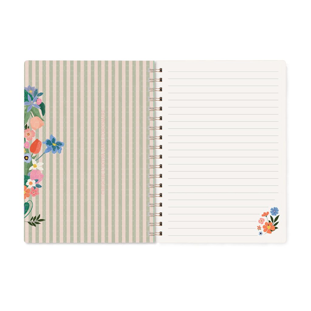 Caietul practic și elegant în format A5 de la marca franceză Hirondelles & Cie este decorat cu o bogată ilustrație florală cu motive subtil ascunse de animale și o inscripție aurie. Datorită modelului distinct, caietul pare un accesoriu elegant pentru birou și pentru geantă.