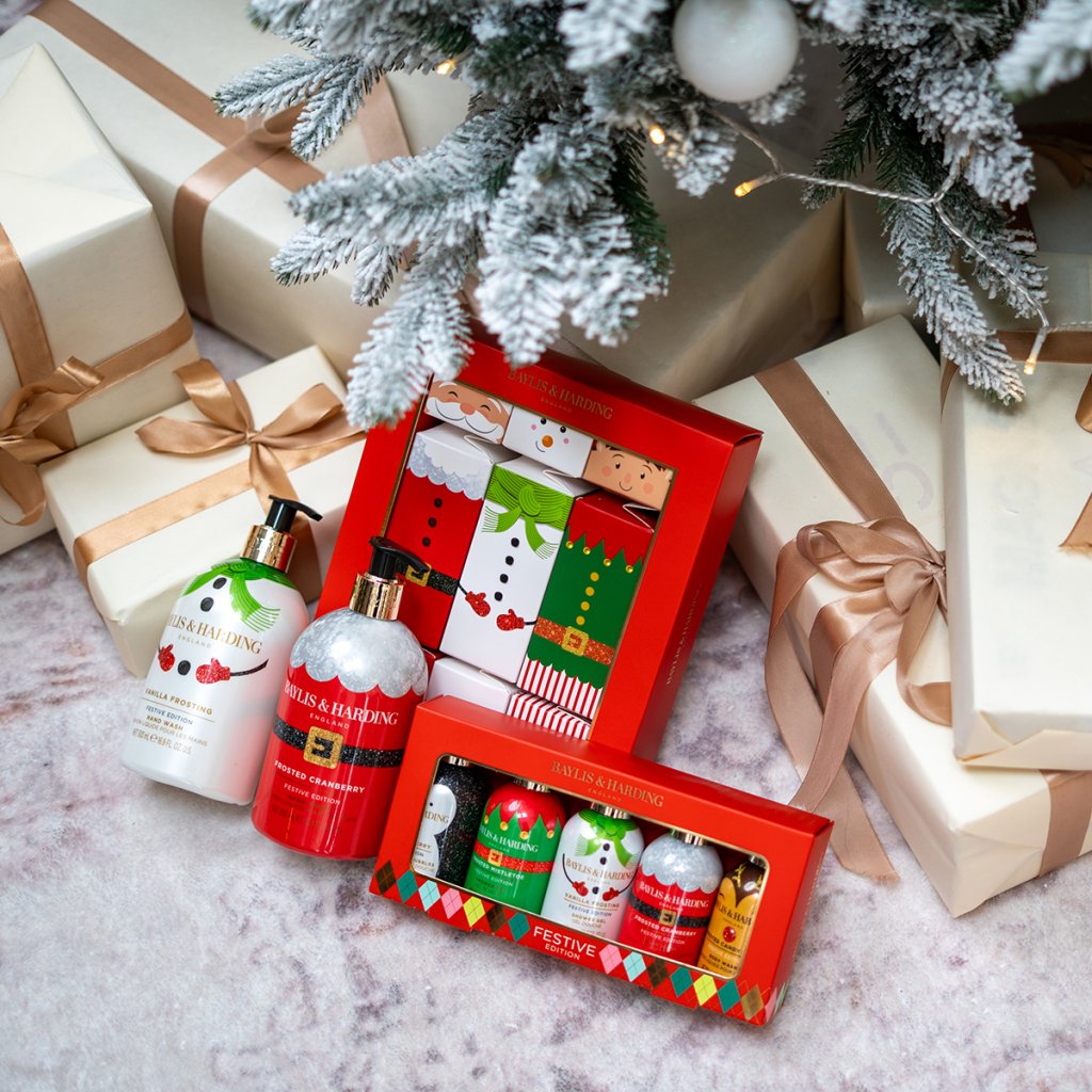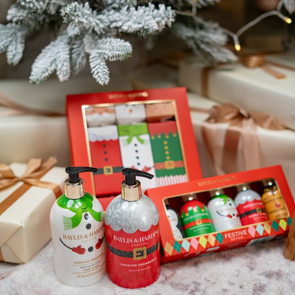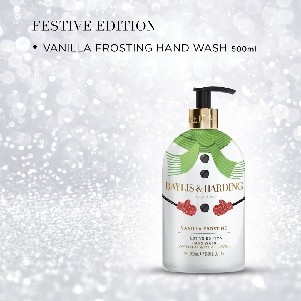 Răsfățați-vă mâinile la fiecare spălare cu săpunul de mâini hrănitor din colecția de Crăciun Baylis & Harding!