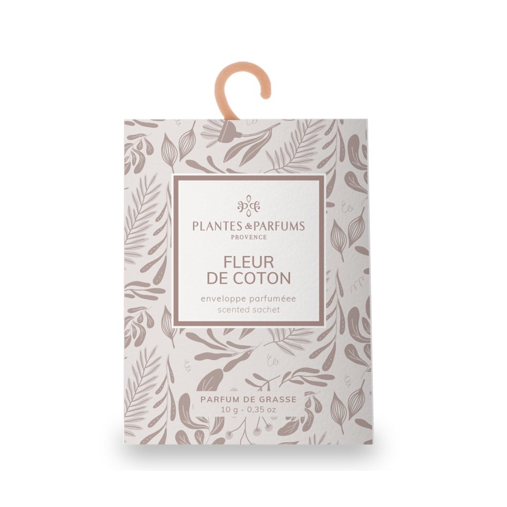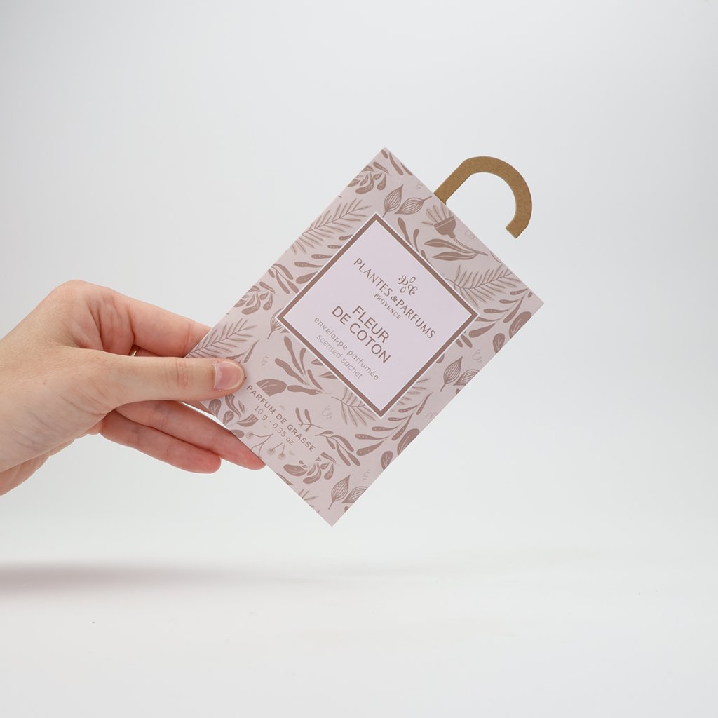 Acest practic plic parfumat pentru dulap este creat din parfumuri de calitate din Grasse și aduce același caracter de parfum pe care îl cunoști de la parfumurile de interior, lumânările sau difuzoarele parfumate ale mărcii Plantes & Parfums de Provence. Fleur de Coton ascunde o aromă de bumbac cu note pudrate și parfumează spațiul cu un parfum delicat, curat, cu o notă plăcută de catifea.