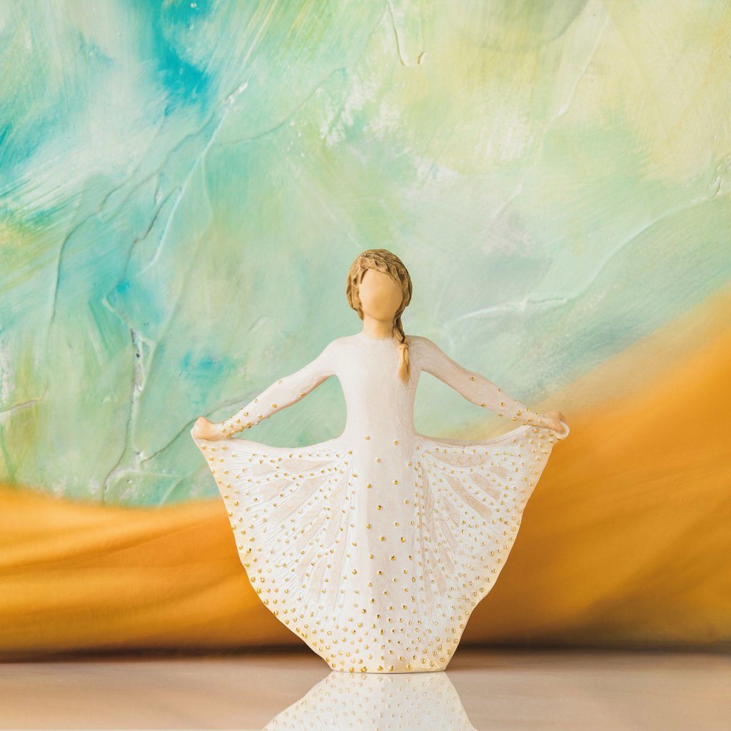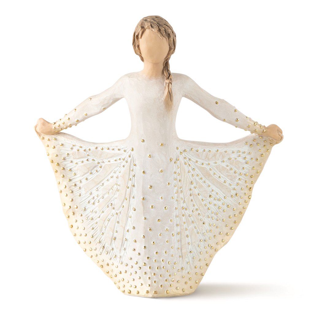 Produsele Willow Tree sunt realizate din rășină artificială care seamănă cu aspectul sculptat. lemn și vopsea fără plumb pictată manual.