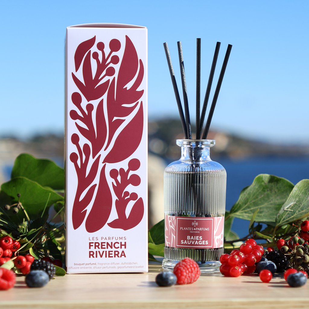 Difuzorul de aromă Baies Sauvages din colecția French Riviera va parfuma interiorul cu o aromă suculentă, energică, inspirată de peisajul mediteranean. Este o aromă distinctă și inedită – nu fructe dulci „obișnuite”, ci fructe de pădure cu o aciditate plăcută și o notă fin condimentată de anason. Se va dezvolta treptat într-o aromă de zmeură și rubarbă, lăsând la final o notă caldă și elegantă cu paciuli, lemn dulce și vanilie.