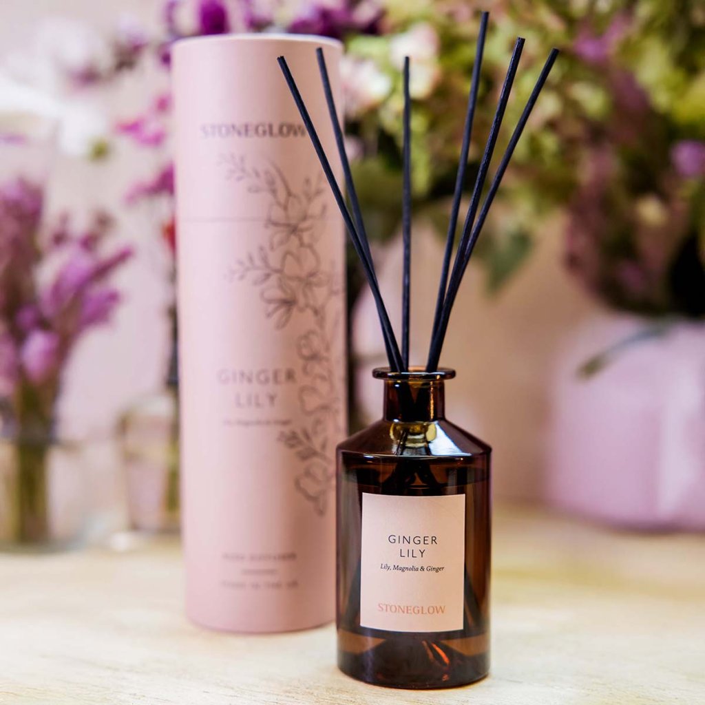 Difuzorul de aromă din colecția The Walled Garden îți va umple casa cu un parfum exotic și captivant de crin, magnolie încântătoare și ghimbir proaspăt. Această combinație unică aduce o armonie de prospețime și dulceață, care amintește de o grădină tropicală înflorită și creează o atmosferă plăcută și caldă. Designul elegant în combinație cu sticla de chihlimbar și imprimeul floral delicat de pe tub se potrivesc în orice interior, indiferent dacă îl plasați în living, dormitor sau baie.