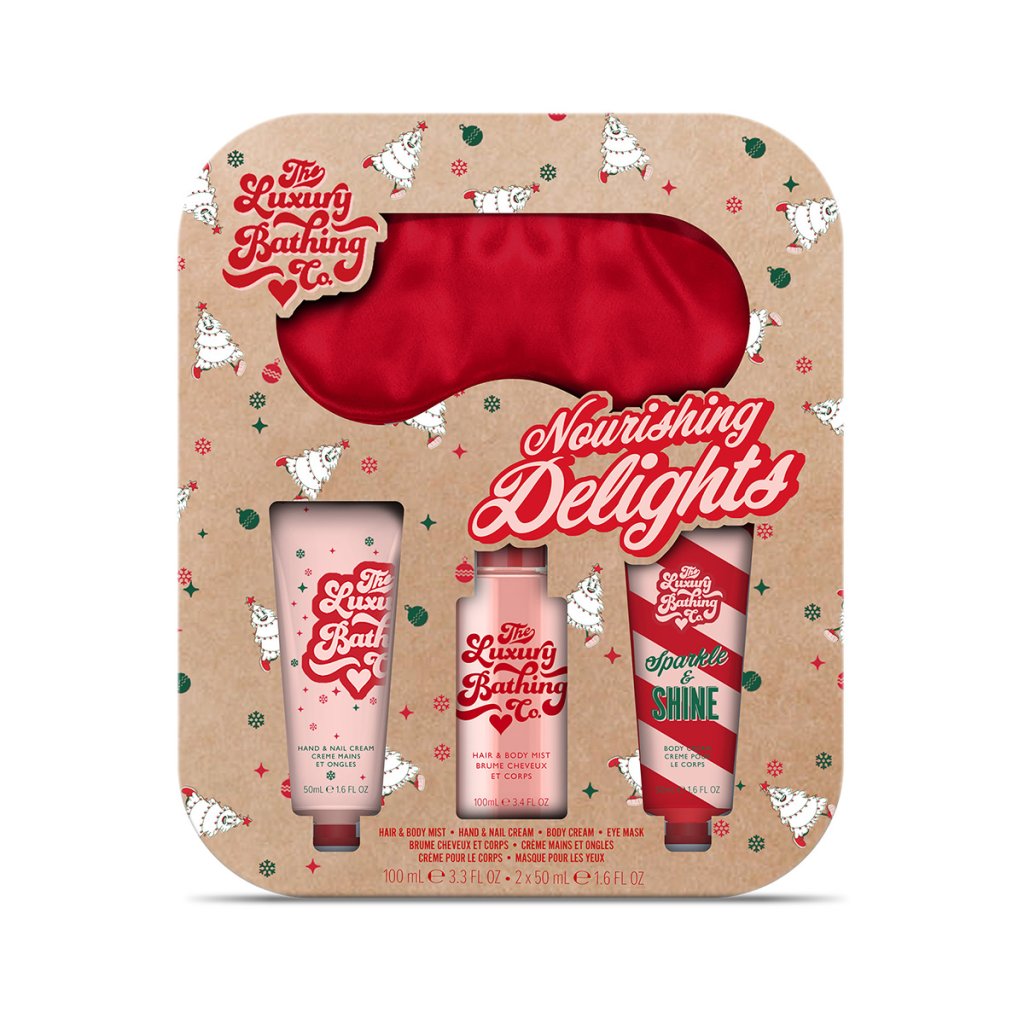Popis vůně: Add cheer this time of year with this fun and vibrant fragrance of warm Cocoa & sweet candied Vanilla making the most magical festive fragrance for the sweetest bathing experience.Contents: 100ml Body Wash, 50ml Hand & Nail Cream, 50ml Body Cream & Reusable Luxury Eyemask