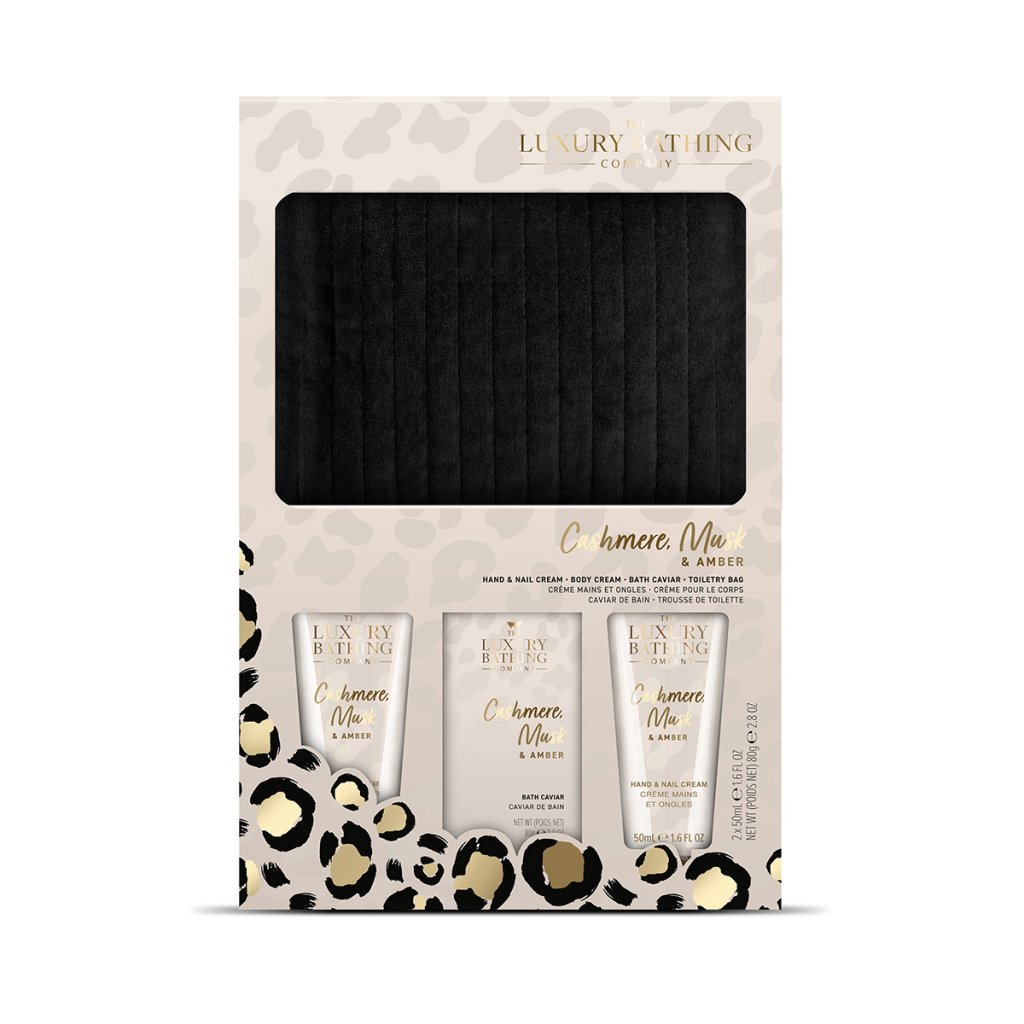 Popis kolekce: Bold animal prints are ever popular from fashion to interiors and beauty, and this trend shows no sign of slowing down. Our Cashmere, Musk & Amber collection is full of vibrancy in a pop of gold and black, against a background of elegant taupe and features a leopard print motif highlighted in gold. This collection is full of gifts to create the perfect night in with velvet cosmetic bags, beautiful tins, and an array of bathtime goodies.