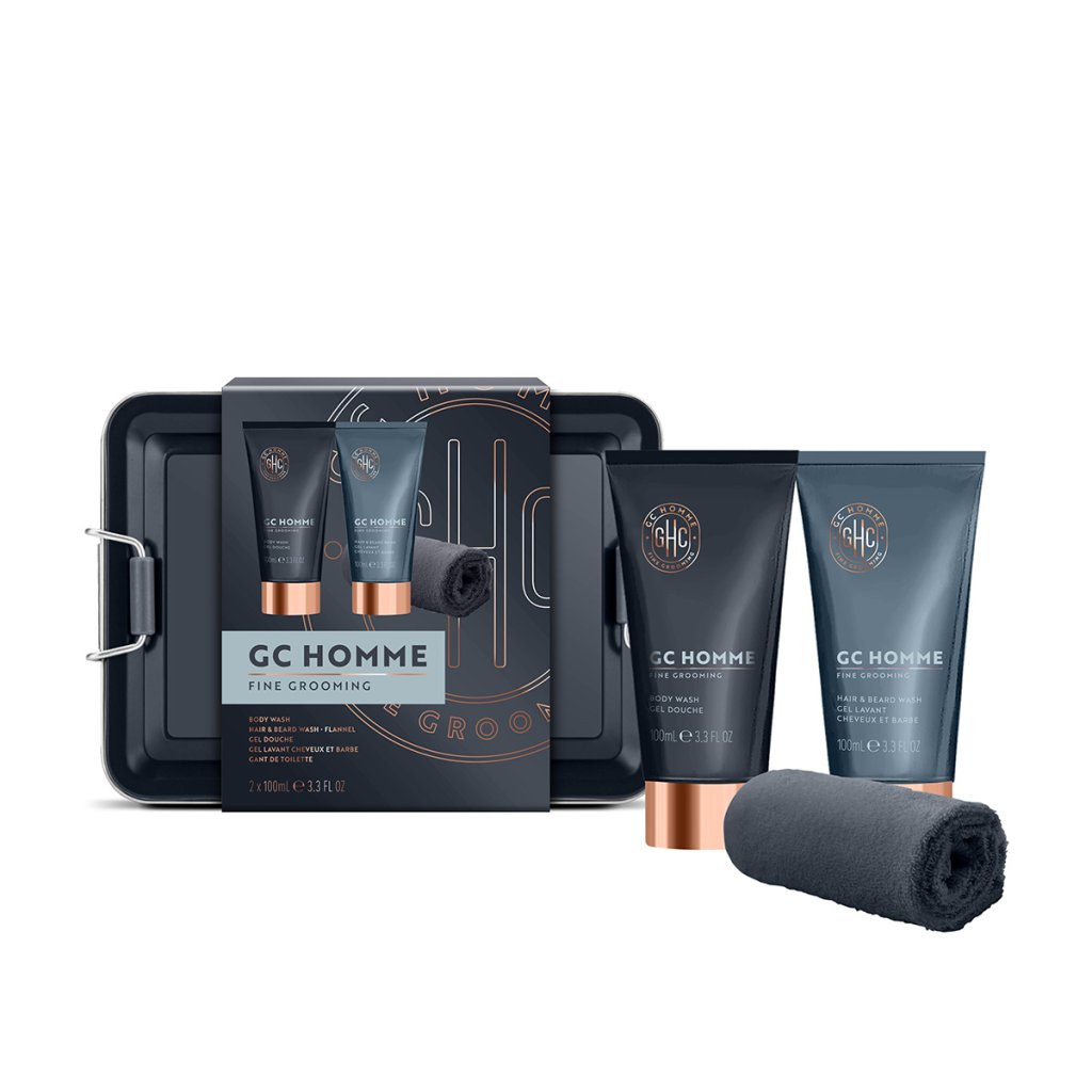 Popis kolekce: GC Homme is the ultimate grooming collection for the sophisticated gentleman. The range, in a rich, midnight blue & and pale blue accents, with copper gold caps is both bold and striking. The range is carefully curated to men's needs, with a focus on grooming, body care and travel essentials, and with hair and beard washes, bodywashes and muscle soaks. The gift sets also come in reusable and sustainable formats such as elegant tins, and wash bags.