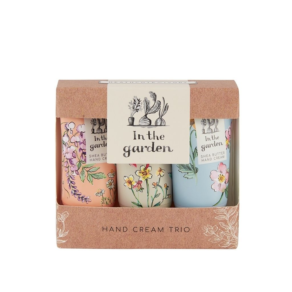 Set cadou de minicreme pentru mâini cu un motiv drăguț inspirat de grădinărit, de peisajul rural englezesc și de flori. Fie că purtați crema în geantă sau în buzunare atunci când lucrați la grădinărit, aceasta are dimensiunea perfectă pentru a se potrivi oriunde, astfel încât să o aveți mereu cu dumneavoastră. Vă îngrijește pielea mâinilor datorită untului de shea, vitaminei E, uleiurilor esențiale de arbore de ceai și de tei și extractelor de mure, rubarbă și flori de soc. Oferă mâinilor un aspect mătăsos chiar și după cea mai intensă muncă.