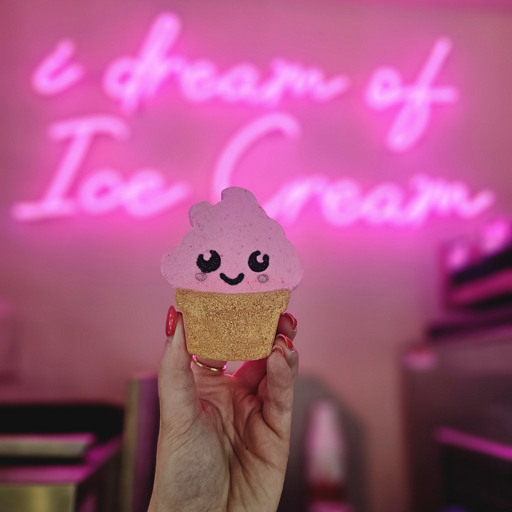 Bomba efervescentă în design de înghețată a fost creată pentru a aduce bucurie și un moment dulce de relaxare în timpul băii zilnice. În timpul efervescenței, parfumul său delicat se răspândește în toată baia, iar apa se transformă într-o baie colorată jucăușă. Datorită uleiului de migdale, lavandă și mușețel, îngrijește și pielea, o catifelează și o lasă moale la atingere. Înghețata Isla adoră să creeze o atmosferă de vis și să transforme baia într-o experiență care îți va aduce un zâmbet pe buze.