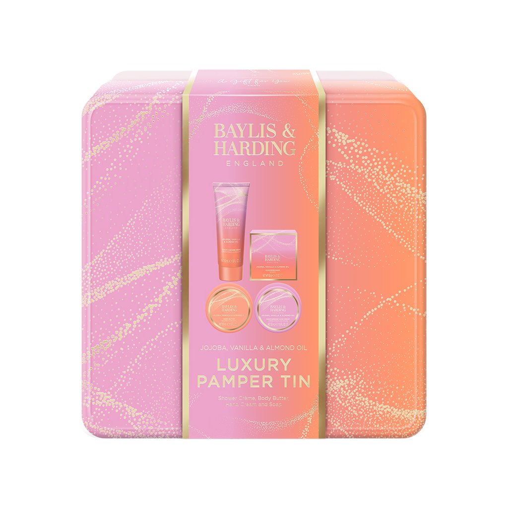 Colecția de lux Jojoba, Vanilla & Almond Oil este prezentată în nuanțe metalice ombré de roz pastel și piersică, cu o explozie de detalii strălucitoare, care, împreună cu hârtia de ambalaj holografică, conferă colecției un aspect unic, inspirat de frumusețea cunoașterii astrologiei. Colecția este însoțită de un parfum delicat și senzual de vanilie, ulei de migdale și jojoba dulce.