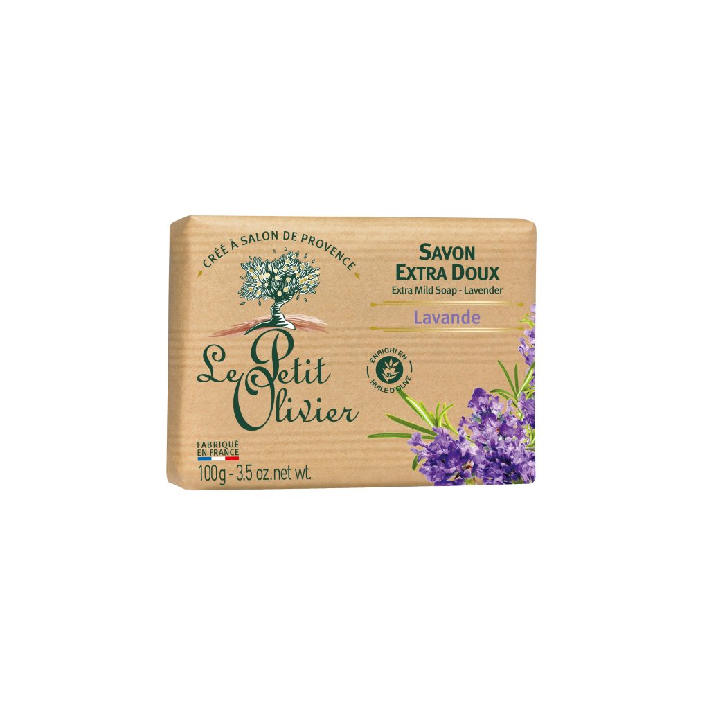 Săpun extra fin al mărcii franceze Le Petit Olivier cu un parfum floral de lavandă.