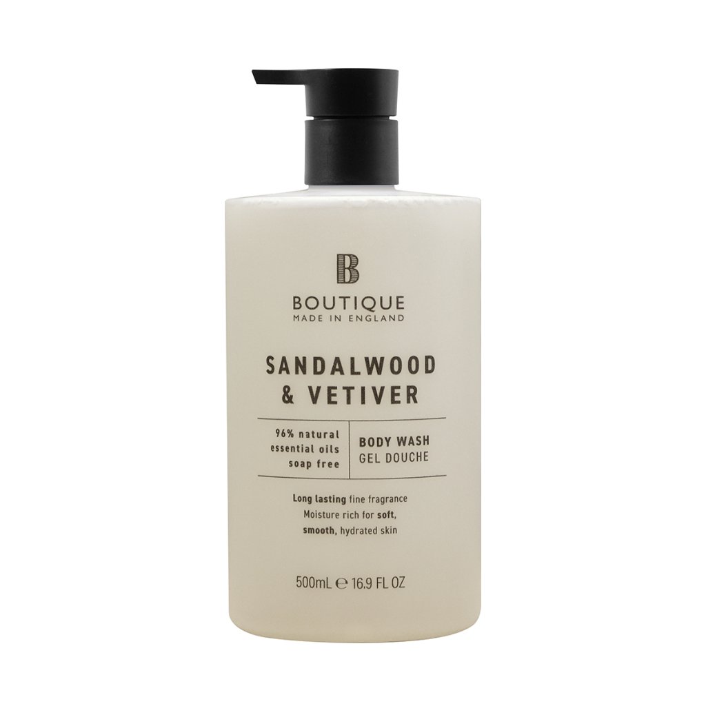 Oferă-i pielii tale o îngrijire excepțională cu Boutique Sandalwood & Vetiver. Acest gel de duș bogat curăță delicat și, în același timp, hidratează intens, astfel încât pielea este fină, catifelată și hrănită după fiecare utilizare. Datorită uleiului de Limnanthes alba, cunoscut pentru proprietățile sale regeneratoare și nutritive, gelul de duș este potrivit și pentru pielea sensibilă. Parfumul cald de lemn de santal și vetiver completat de tonuri de bergamotă și cedru oferă o senzație perfectă de confort în timpul ritualului zilnic de spălare.
