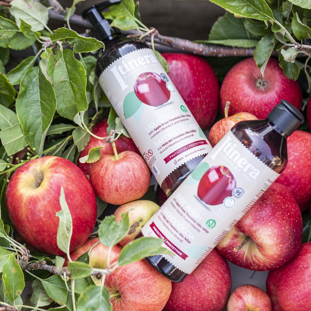 Oferiți pielii dumneavoastră o îngrijire delicată și protectoare cu săpunul de corp Itinera, îmbogățit cu extract de mere, cunoscut pentru efectele sale regeneratoare și emoliente. Datorită celor 95% ingrediente naturale, inclusiv suc de aloe vera și glicerină, curăță delicat pielea și o protejează de uscare. Spuma bogată lasă pielea moale, hidratată și proaspătă. Compoziția excepțională este îmbogățită și cu extracte de struguri toscani, lămâie de pe coasta Amalfi și tărâțe de grâu din valea Padului, care susțin hrănirea, calmarea și protecția naturală a pielii. Parfumul proaspăt de fructe cu note delicate, calde, oferă o senzație de confort și relaxare la fiecare duș.