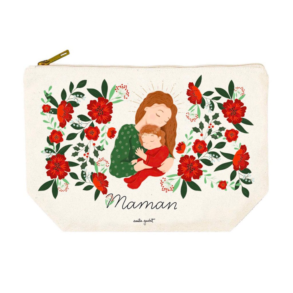 O geantă de cosmetice din bumbac cu o ilustrație delicată a mamei și copilului este un accesoriu frumos și semnificativ pentru îngrijirea zilnică. Desenul autorului Emilie Gauvrit, în combinație cu motive florale puternice, creează un vizual puternic, dar sensibil, care simbolizează maternitatea și apropierea.
