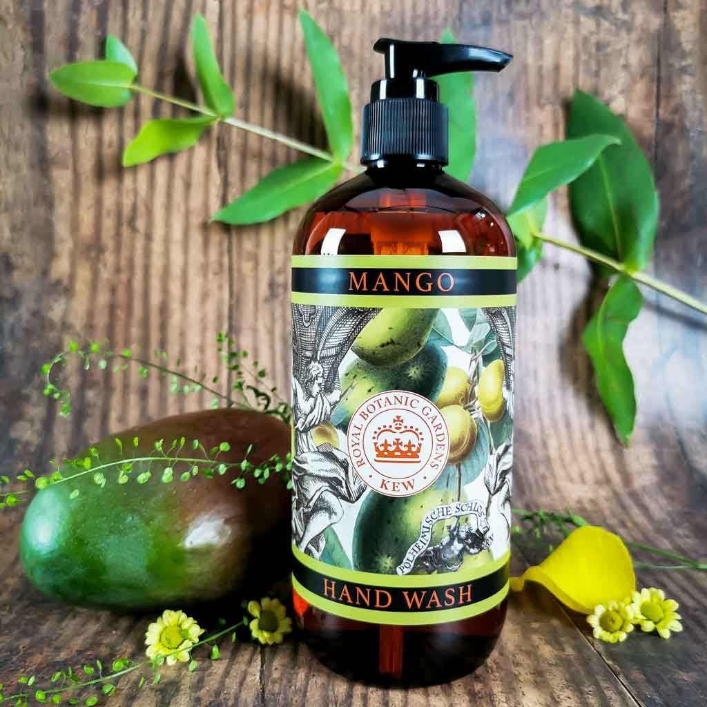 Găsiți săpunul lichid într-un ambalaj cu pompiță, completat de ilustrații botanice din arhiva istorică Kew.
