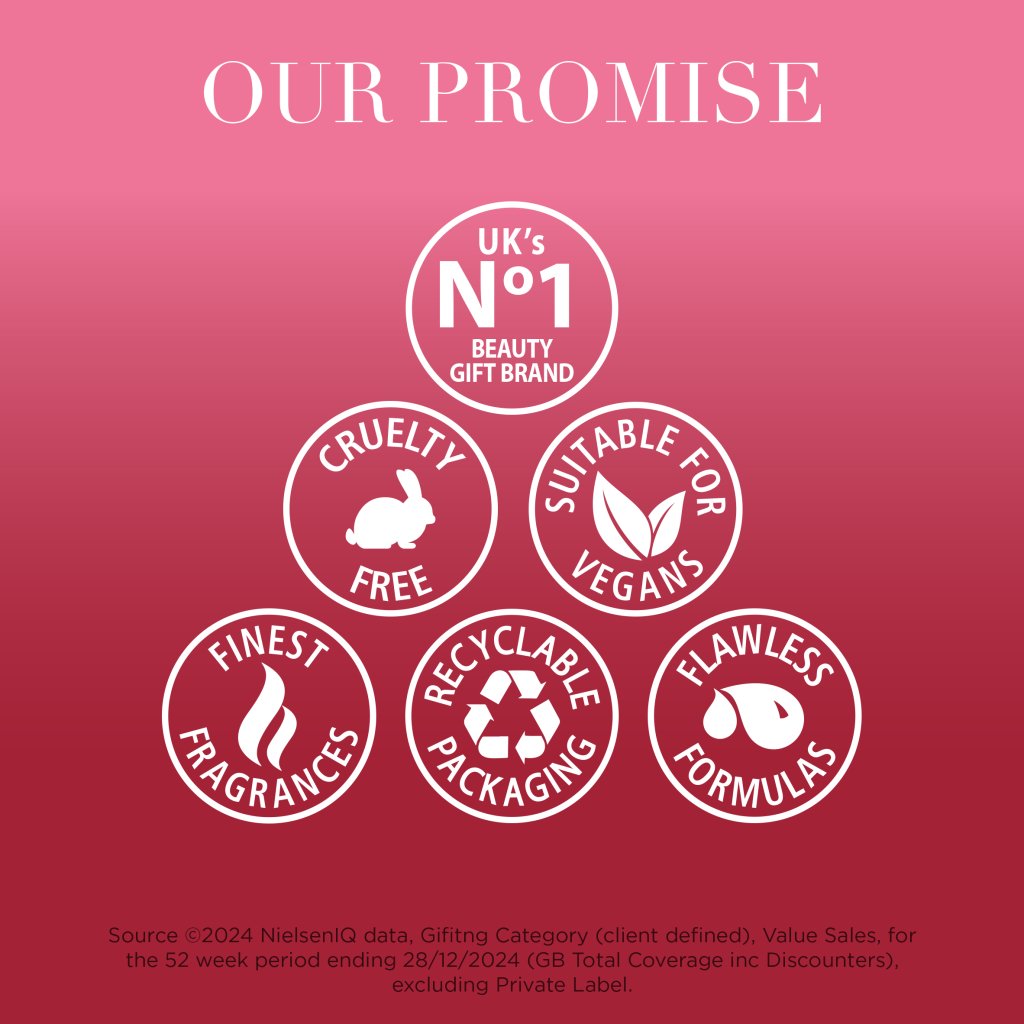 Colecția Midnight Cherry cu parfum de cireșe dulci-acrișoare, migdale fine și o picătură de lichior combină atmosfera festivă și farmecul cald al serilor de iarnă. Designul expresiv în tonuri de roșu și roz cu detalii aurii conferă fiecărui produs o notă festivă – ideal pentru momente de răsfăț sau ca un cadou luxos sub brad.