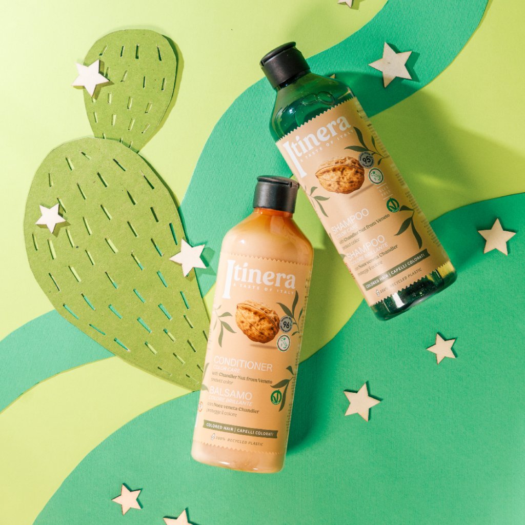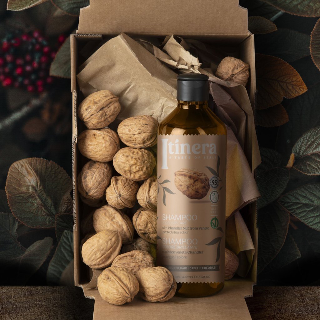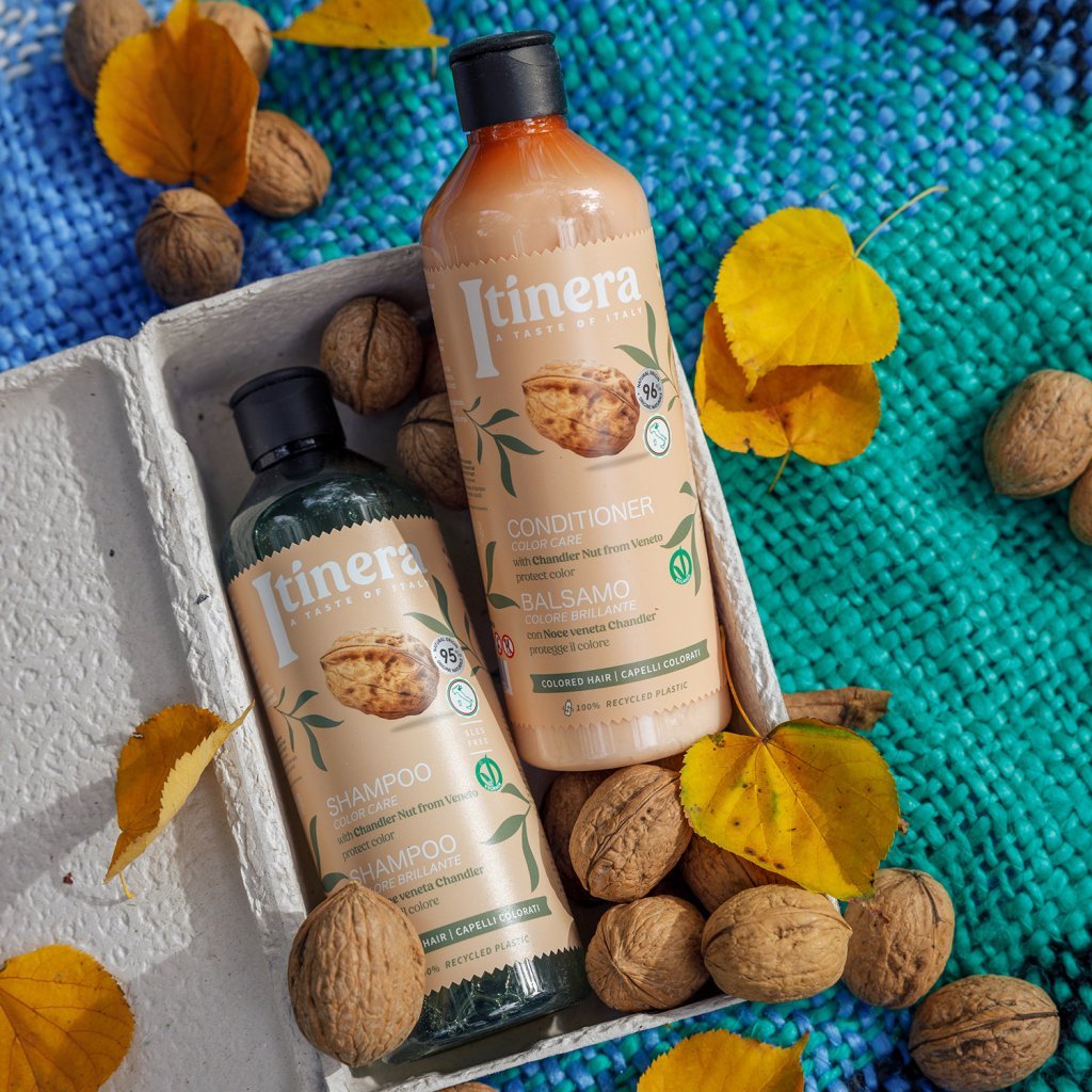 Oferiți părului vopsit o îngrijire unică cu Itinera Color Care Shampoo, care protejează și prelungește strălucirea culorii datorită extractului de nuci Chandler din regiunea italiană Veneto și extractelor din semințe de floarea-soarelui. Aceste ingrediente naturale bogate în antioxidanți și substanțe hidratante protejează părul împotriva decolorării cauzate de radiațiile UV și radicalii liberi, lăsând în același timp părul mătăsos, moale, strălucitor și plin de viață. Formula delicată creează o spumă ușoară care curăță delicat părul fără a-l încărca. Parfumul senzual de lemn, flori, alune și fructe transformă fiecare spălare a părului într-o experiență de lux.