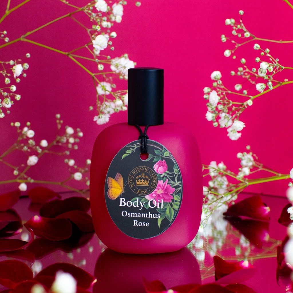 Oferiți-vă o piele frumoasă și suplă cu acest ulei de corp luxos din colecția Kew Gardens! Vă va învălui cu un parfum delicat, exotic de flori, acompaniat de note de bergamotă, mandarină și piper roz. Uleiul din sâmburi de caise cu conținut de vitamina C și E catifelează și hidratează intens pielea, în timp ce uleiul de șofrănel, bogat în antioxidanți, ajută la combaterea acneei și previne uscarea pielii. În plus, corpul dumneavoastră va fi parfumat cu caise și acorduri florale de bujor și trandafir, armonizându-se cu o bază caldă de ambră, patchouli și cedru roșu.