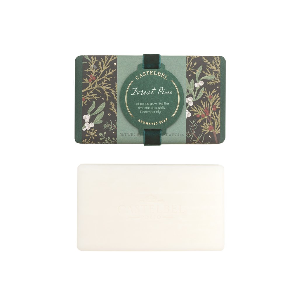 Un cadou mic, dar excepțional, care vă va încânta atât pe dumneavoastră, cât și pielea dumneavoastră. Săpunul solid Forest Pine amintește de o plimbare printr-o pădure înzăpezită – parfumul proaspăt de mentă și eucalipt se împletește cu note de pin, lemn și mosc cald. Săpunul curăță delicat, calmează pielea și îngrijește mâinile în timpul iernii, când au nevoie de o atenție specială.