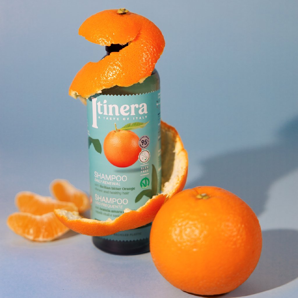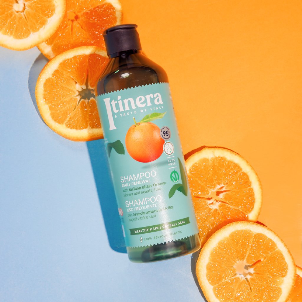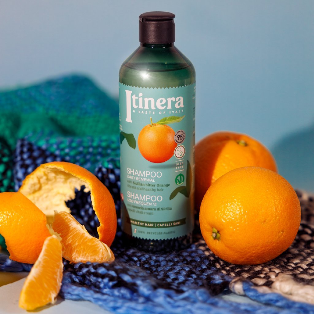 Oferiți părului dumneavoastră îngrijire zilnică plină de energie și prospețime cu șamponul Itinera, îmbogățit cu extract de coajă de portocală amară siciliană. Acest antioxidant natural, obținut din portocale amare cultivate în climatul mediteranean însorit, curăță delicat părul, îl fortifică și îl lasă radiant de sănătos, moale și ușor, fără a-l încărca inutil. Șamponul conține 95% ingrediente naturale și este îmbogățit cu componente vegetale care respectă chiar și cea mai sensibilă piele a capului. Parfumul proaspăt de citrice cu note de lemn și ierburi aromatice oferă o experiență înălțătoare la fiecare spălare.