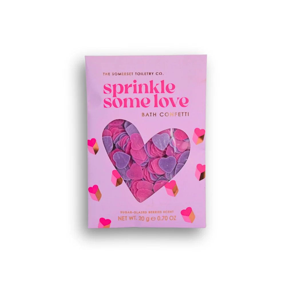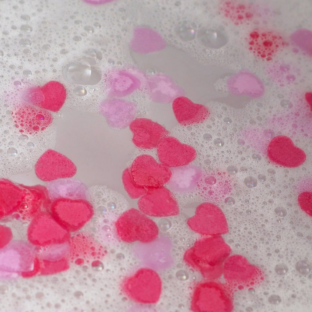 Oferă-ți o evadare dulce din realitatea de zi cu zi cu confetti romantice de baie Sprinkle Some Love. Inimioarele delicate se dizolvă lent după ce sunt aruncate în apa caldă și parfumează întreaga baie cu aroma suculentă a fructelor de pădure coapte învelite în zahăr. O baie obisnuita devine instantaneu un ritual parfumat care va multumi toti iubitorii de produse cosmetice de baie si de arome dulci de fructe. Ideal ca un mic sfat de cadou de Ziua Îndrăgostiților, aniversare, zi de naștere sau pur și simplu pentru o seară romantică în doi.