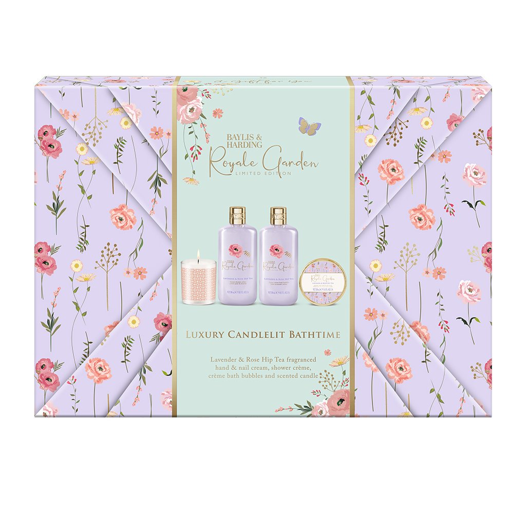 Royale Garden - set de îngrijire corporală și lumânare, 4 buc