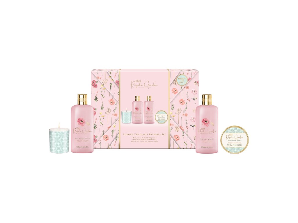 Royale Garden - set pentru îngrijire corporală cu lumânare, 4buc set relaxant cu produse pentru corp cu lumânare parfumată în cutie cadou