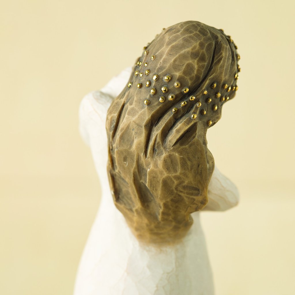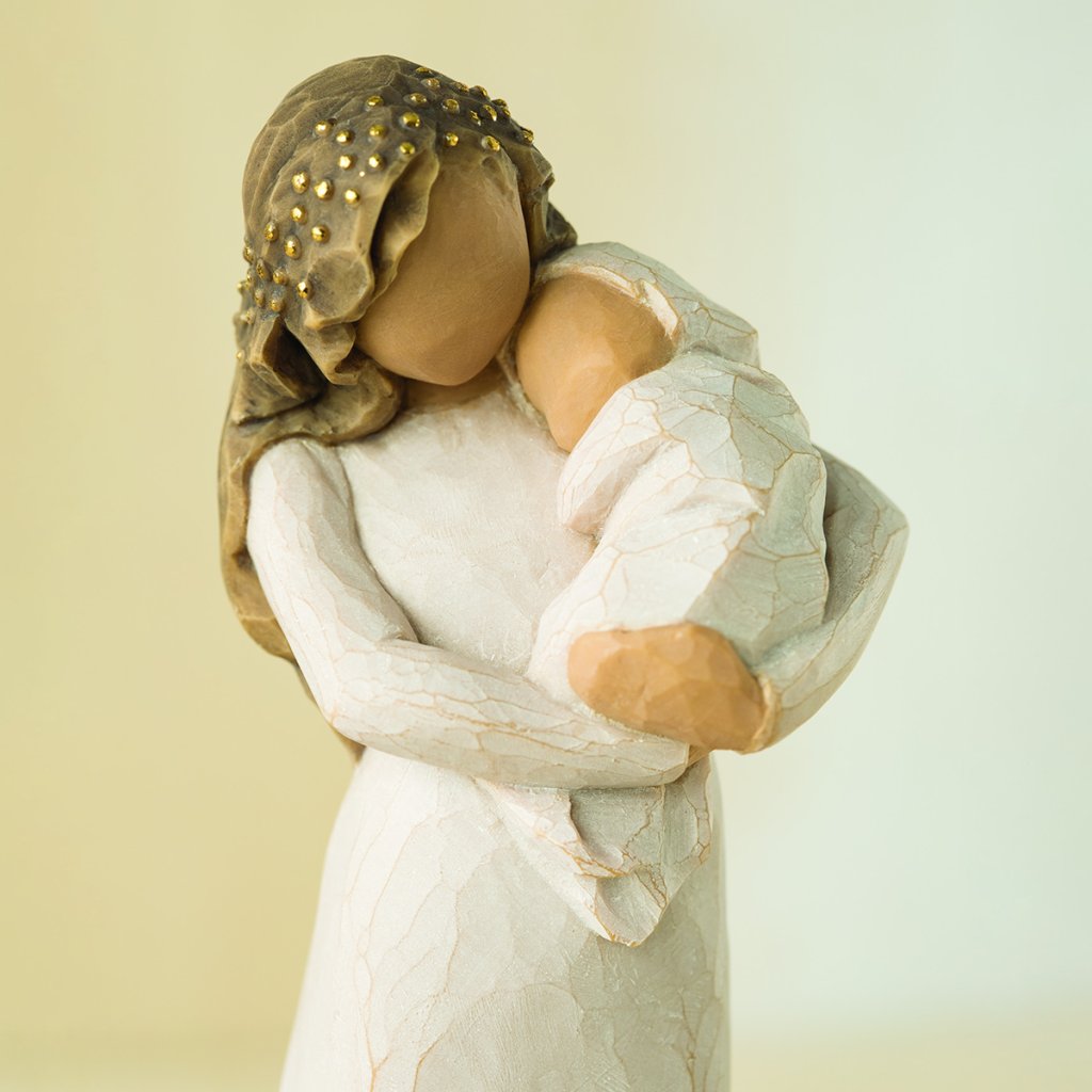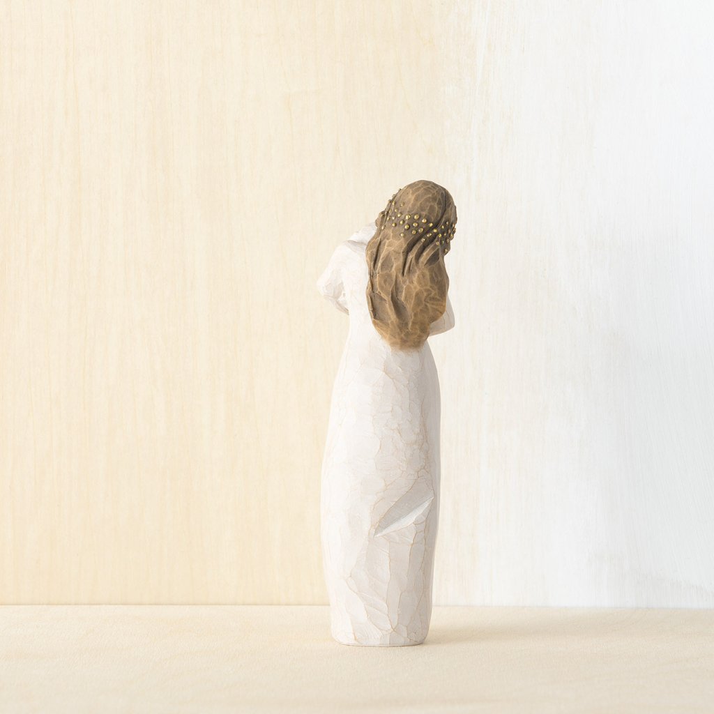 Produsele Willow Tree sunt realizate din rășină artificială care seamănă cu aspectul sculptat. lemn și vopsea fără plumb pictată manual.