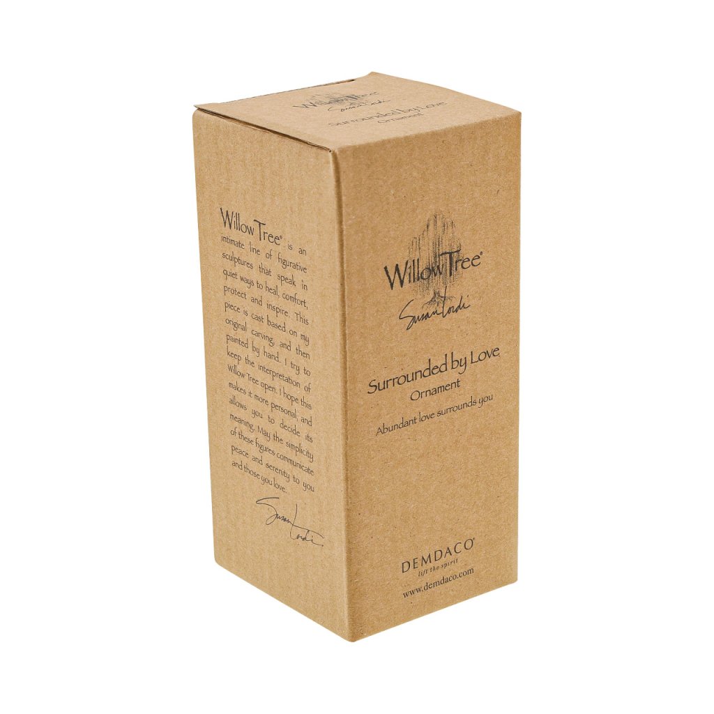 Autoarea Susan Lordi despre figurina „Înconjurat de iubire”: „Am vrut să creez o figurină cu chip în flori, care să-și perceapă parfumul cu simțurile și să-și simtă petalele pe față. , sentimentul de securitate pe care îl are în împrejurimile ei. Această piesă ar putea exprima dragostea de la toți cei dragi din jurul nostru... dacă cineva se confruntă cu dificultăți, poate fi o amintire a familiei și prietenilor care ne susțin și sunt acolo pentru noi. Această figurină poate fi și o modalitate de a spune cuiva că îți pasă de el... sau poate fi doar un mic cadou pentru cei care iubesc grădina. Îmi place că oamenii pot alege cum donează. Alegerea macilor a fost inspirată de călătoria mea în Franța. Macul rosu simbolizeaza amintirea, asa ca aceasta piesa ar putea fi si un omagiu adus celor care ne-au servit tara.''