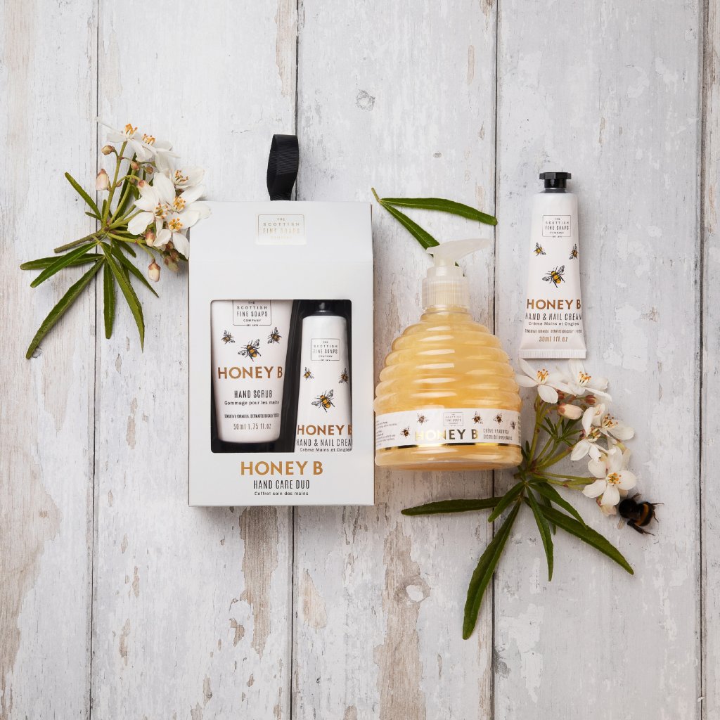 Acest set luxos pentru îngrijirea mâinilor cu miros dulce, are ca efect benefic extractul natural de miere de salcâm. Exfoliantul pentru mâini conține ulei de ricin natural biodegradabil, iar crema de mâini este îmbogățită cu 10% unt de shea.