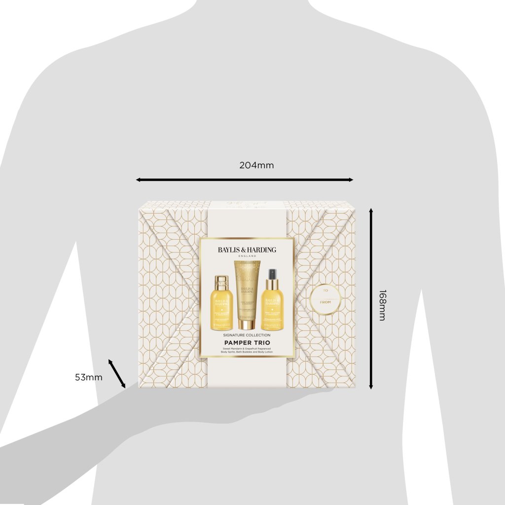 Colecția iconică Sweet Mandarin & Grapefruit combină îngrijirea de lux cu stilul Art Deco atemporal. Combinația elegantă de alb, auriu și modele geometrice subliniază atmosfera festivă a acestei colecții. Parfumul inconfundabil cu note proaspete de citrice și iasomie încântă simțurile și transformă îngrijirea zilnică într-un mic ritual.