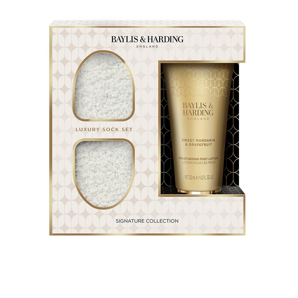 Oferă picioarelor obosite confort și îngrijire cu acest set cadou Baylis & Harding! Setul conține o cremă hrănitoare pentru picioare, care hidratează pe termen lung și oferă alinare pentru pielea neplăcută, uscată și îngroșată, plus un parfum plăcut de mandarină și grapefruit. Împreună cu șosete moi și delicate, oferă picioarelor obosite căldura și confortul necesare pentru o odihnă perfectă.