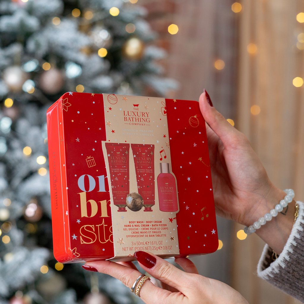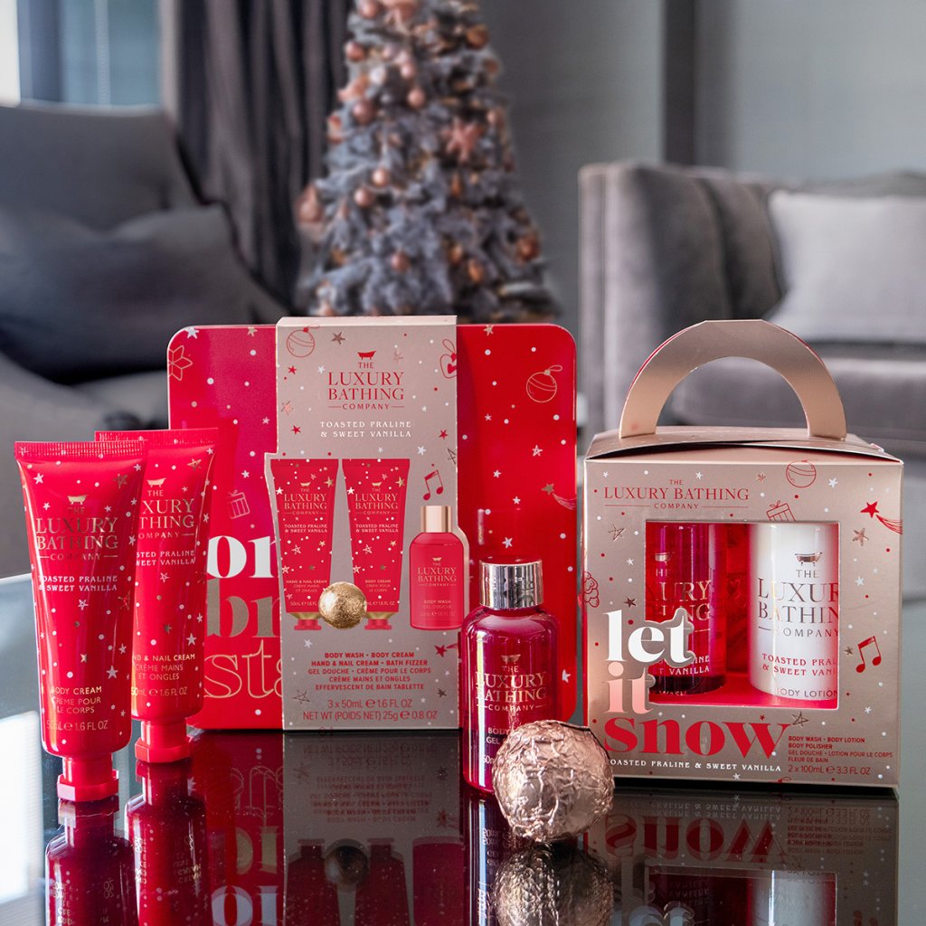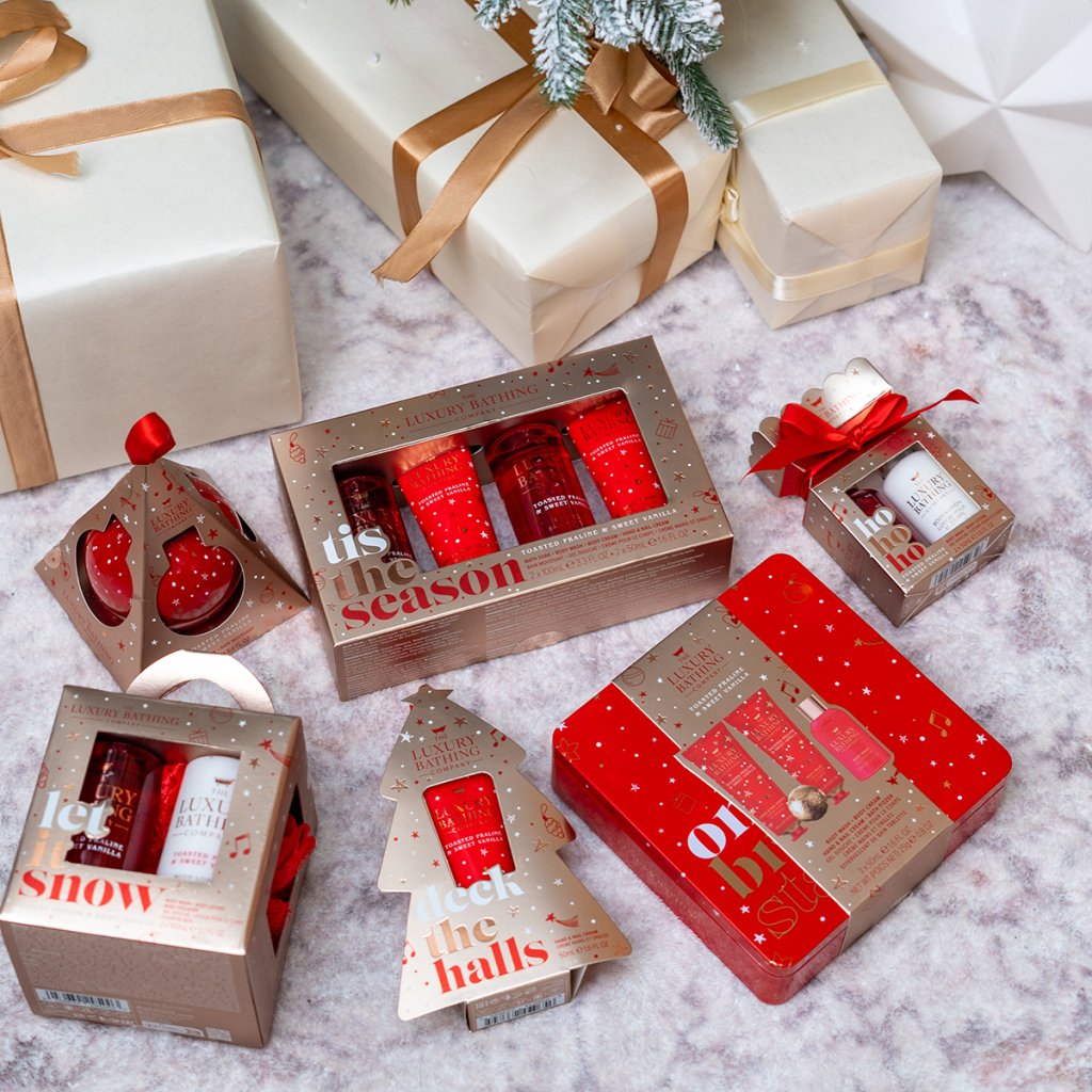 Oferă sărbătorilor din acest an o notă de magie cu colecția de Crăciun Toasted Praline & Sweet Vanilla! Designul elegant în roșu și auriu va crea atmosfera potrivită de Crăciun în baia ta. Împreună cu parfumul de alune pralinate și vanilie dulce, creează o experiență festivă perfectă pentru corpul și simțurile tale.