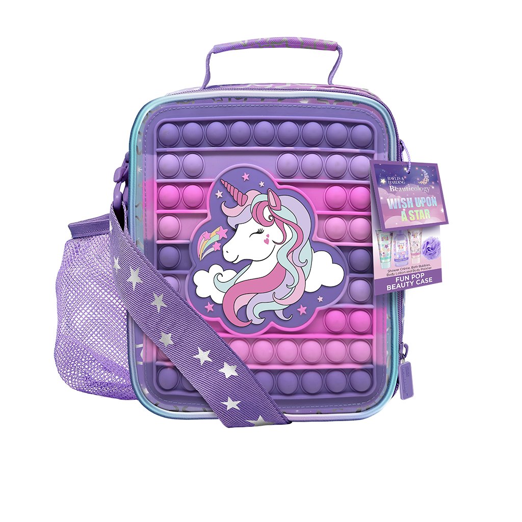 Acest set minunat de produse într-un rucsac pop it este un cadou excelent pentru fetițele mici și mari care iubesc unicornii. În rucsac veți găsi un burete de corp și 3 produse de îngrijire pentru întregul corp. Oferiți un răsfăț relaxant cu această colecție exclusivă de produse cu parfum de dulciuri, bomboane de căpșuni și vată de zahăr!